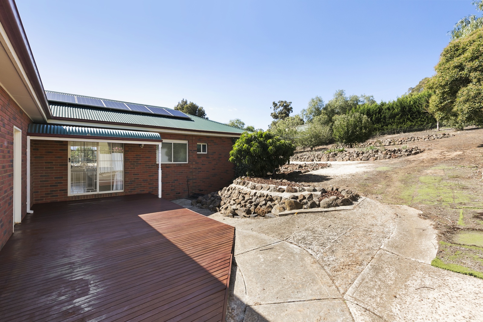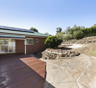 $460,000 to $480,000 price range. This beautiful Hedges built 2003 brick veneer home on nearly 1/4 of an acre offers magnificent northerly views from the master bedroom and lounge room and delivers so much as the perfect family home. Freshly painted throughout the master bedroom has a full ensuite and walk in robe while the sunny all electric kitchen offers plenty of bench space, large pantry, loads of cupboards and that coveted easterly aspect. There is a double glass door opening off the tiled family room onto a fully decked entertainment area with a door leading into the double lock up garage. At the southern end of the house there are two roomy bedrooms with built in robes, both newly carpeted, plus a family bathroom and separate toilet. A large laundry with built in cupboards opens out to a decked pathway leading to the clothes line and the terraced backyard. With the added benefit of 16 solar panels and sealed driveway, this well thought out and beautifully built property will be a complete delight for the new owner.