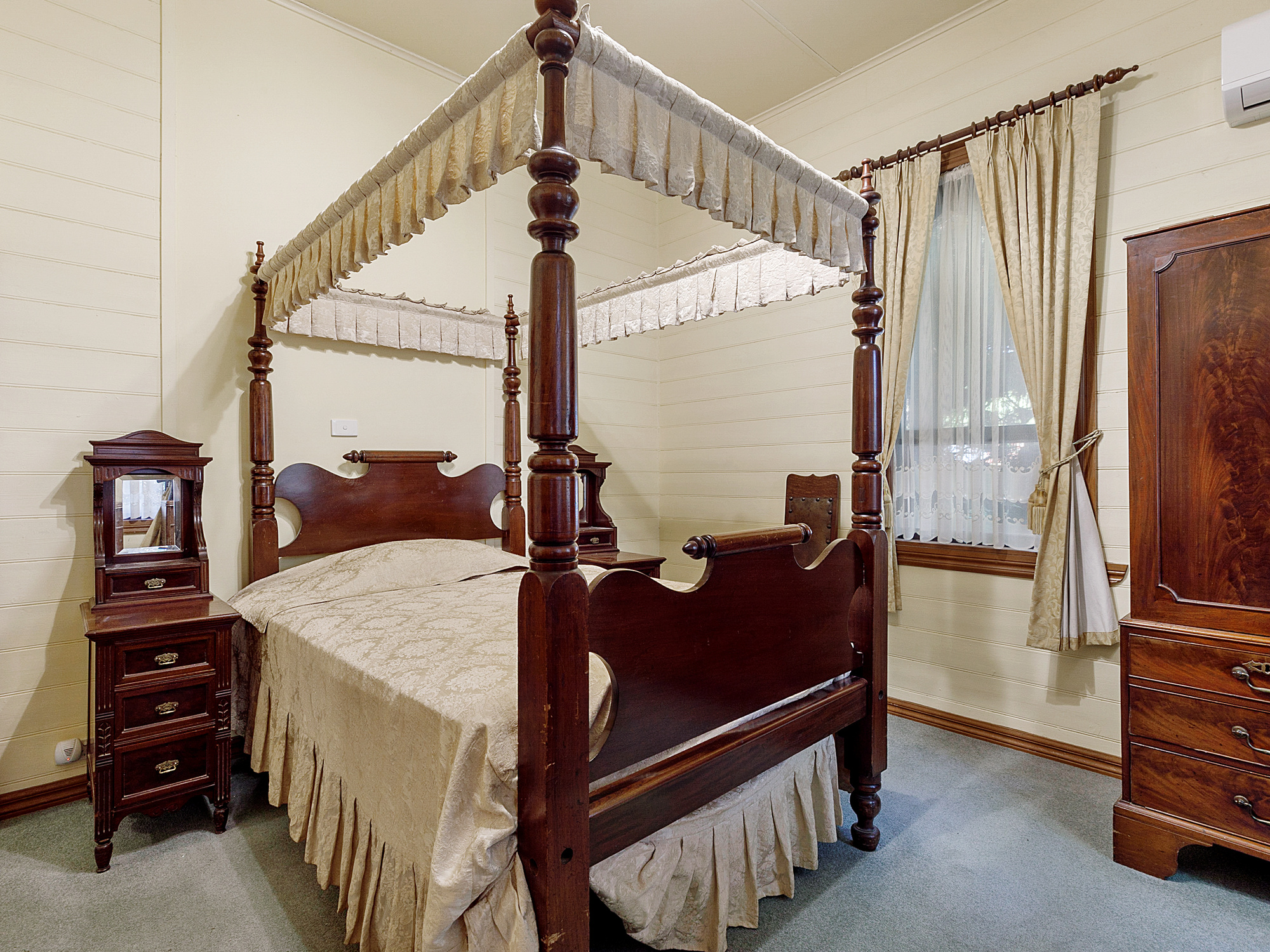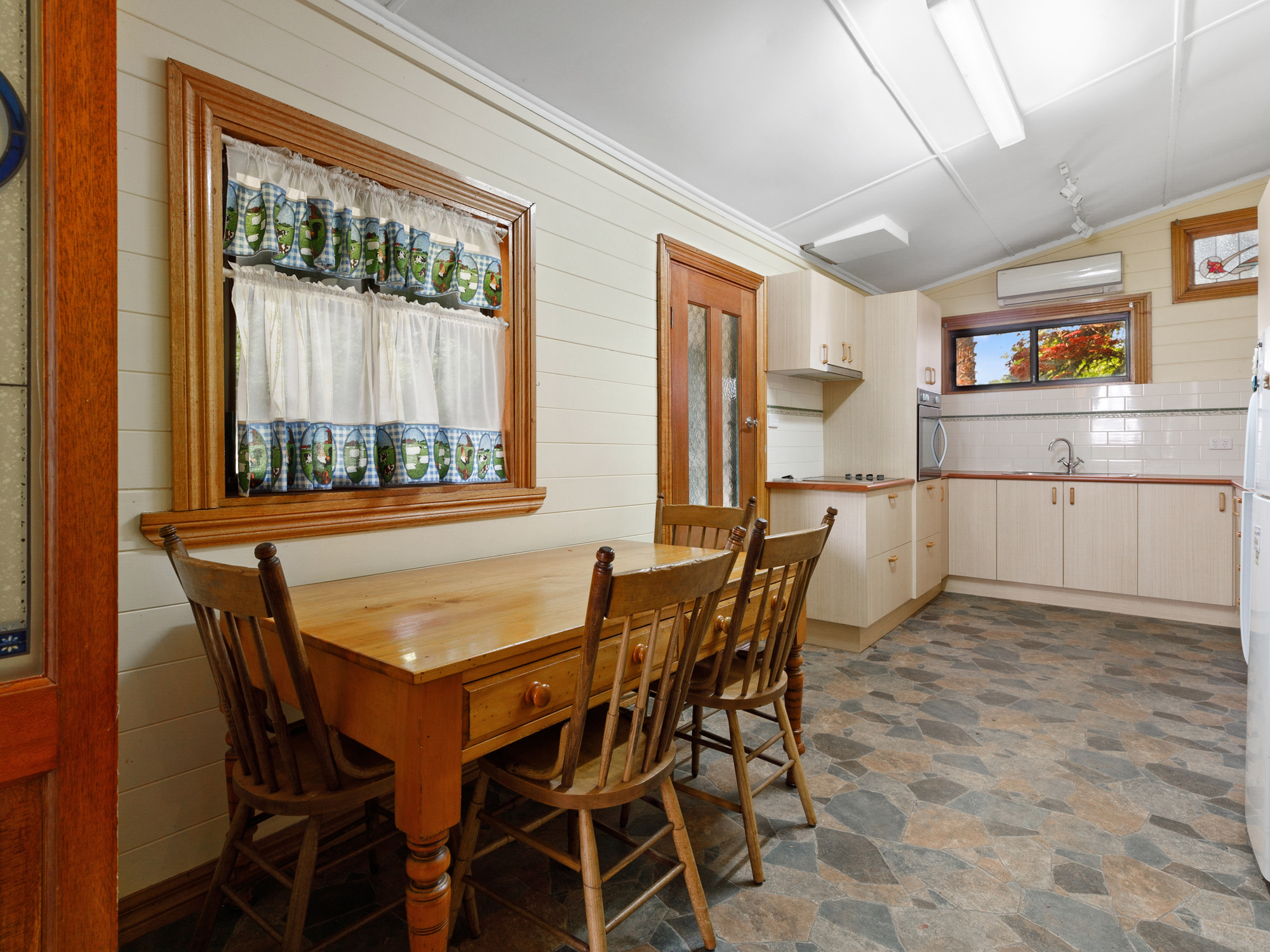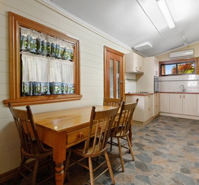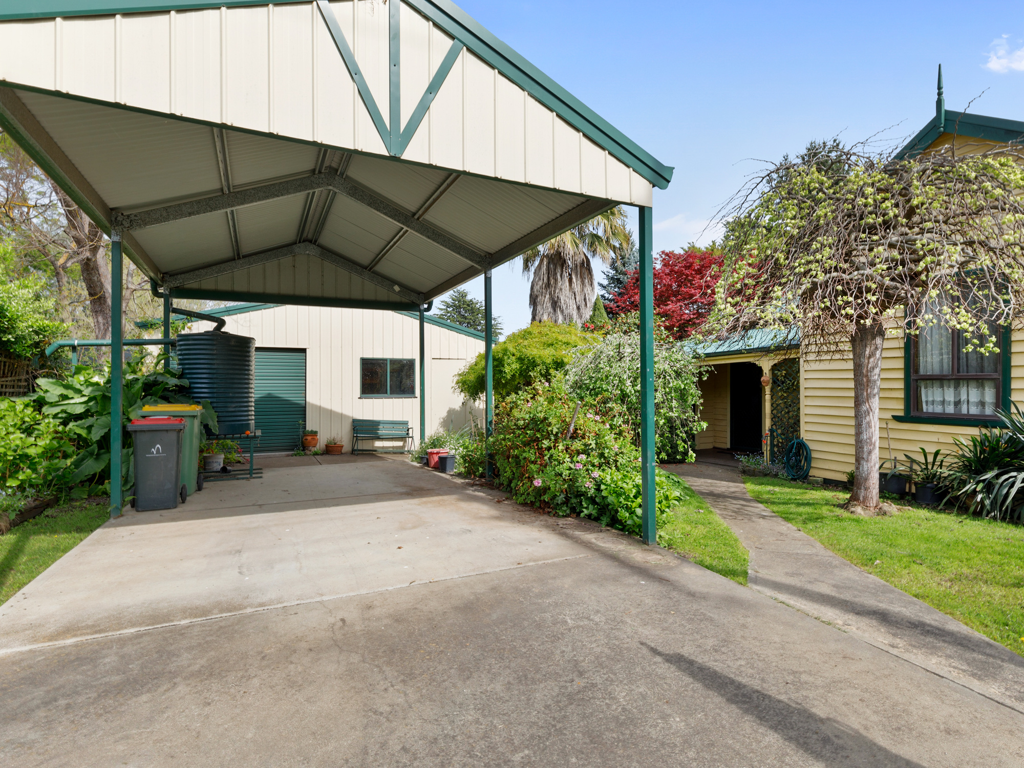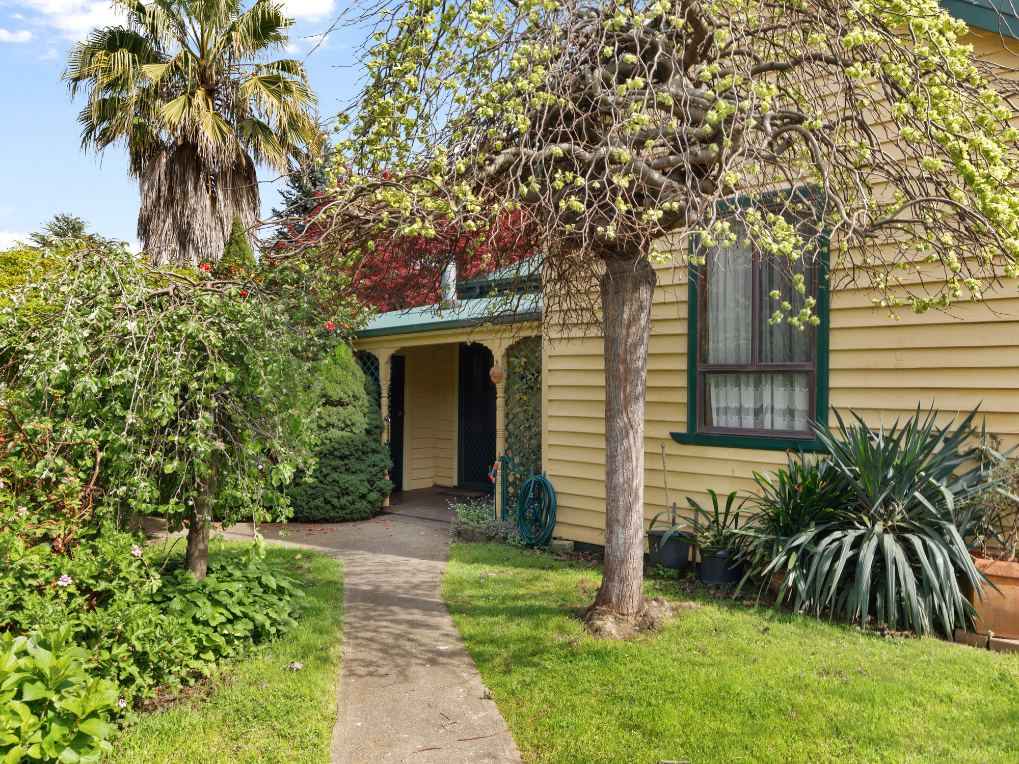 The beautiful timber 3 bedroom home is well over 100 years old with high timber ceilings and walls, and lead light windows distributed throughout. Renovations have been made to modernize the kitchen and bathroom, concrete stumps have replaced the original ones but all of the old charm remains.The wood fire in the lounge has been enclosed for safety and there are reverse cycle air conditioners for added temperature control. From the moment you step foot on the property you are awed by the magnificent trees and shrubs, and as you wander around the property you discover the many garden delights and feel the general ambience of a bygone era. Surrounded by a timber fence, this beautiful and private residence offers a peek into yesteryear, and as you step up onto the front porch, you may hear the rustle of crinoline and the smell of freshly baked tea cake. Just a very short walk into Yea this wonderful property is simply a delight.