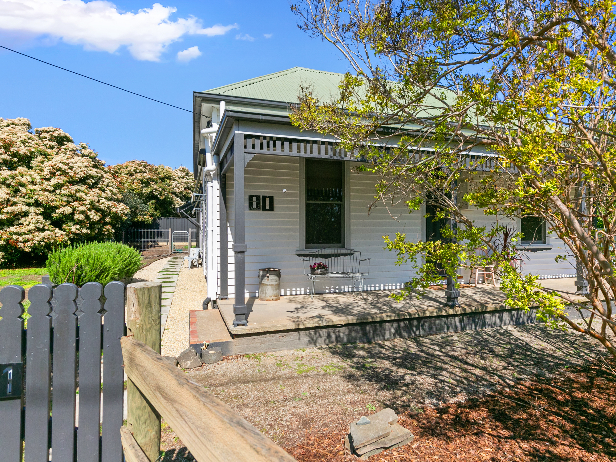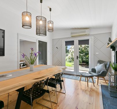 This highly desirable and beautifully renovated 3 bedroom home on 703m2 (approx) offers elegant living in comfortable surrounds. 14 foot ceilings are in the front 4 rooms which includes the 3 bedrooms and lounge. There is a double fire place between the lounge and a front bedroom which is indicative of the era. French doors have been added to the dining area which also boasts a coonara wood heater and this is adjacent to the completely renovated kitchen which is only a couple of years old. 2 split system air conditioners in the lounge and dining rooms ensure year round temperature control. The property has been recently re stumped and the previous owners had it re wired. A concrete cross over from Melbourne Road will be finalised before settlement and new fencing has been erected on the back boundary. Theres plenty of area for furry friends and also for avid gardeners to make their mark. Only a 5 minute flat walk into town, this lovely property has so much to offer.
