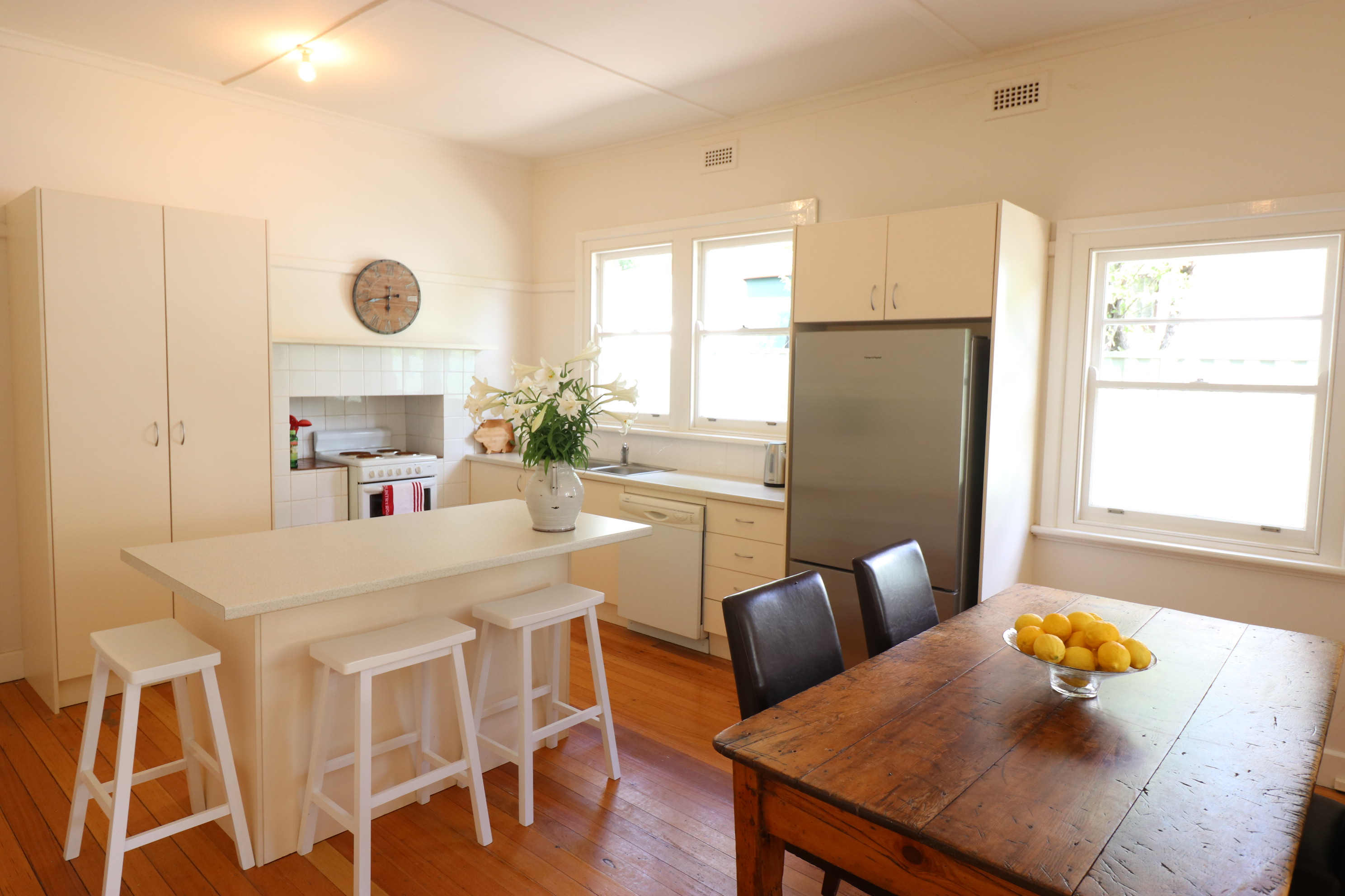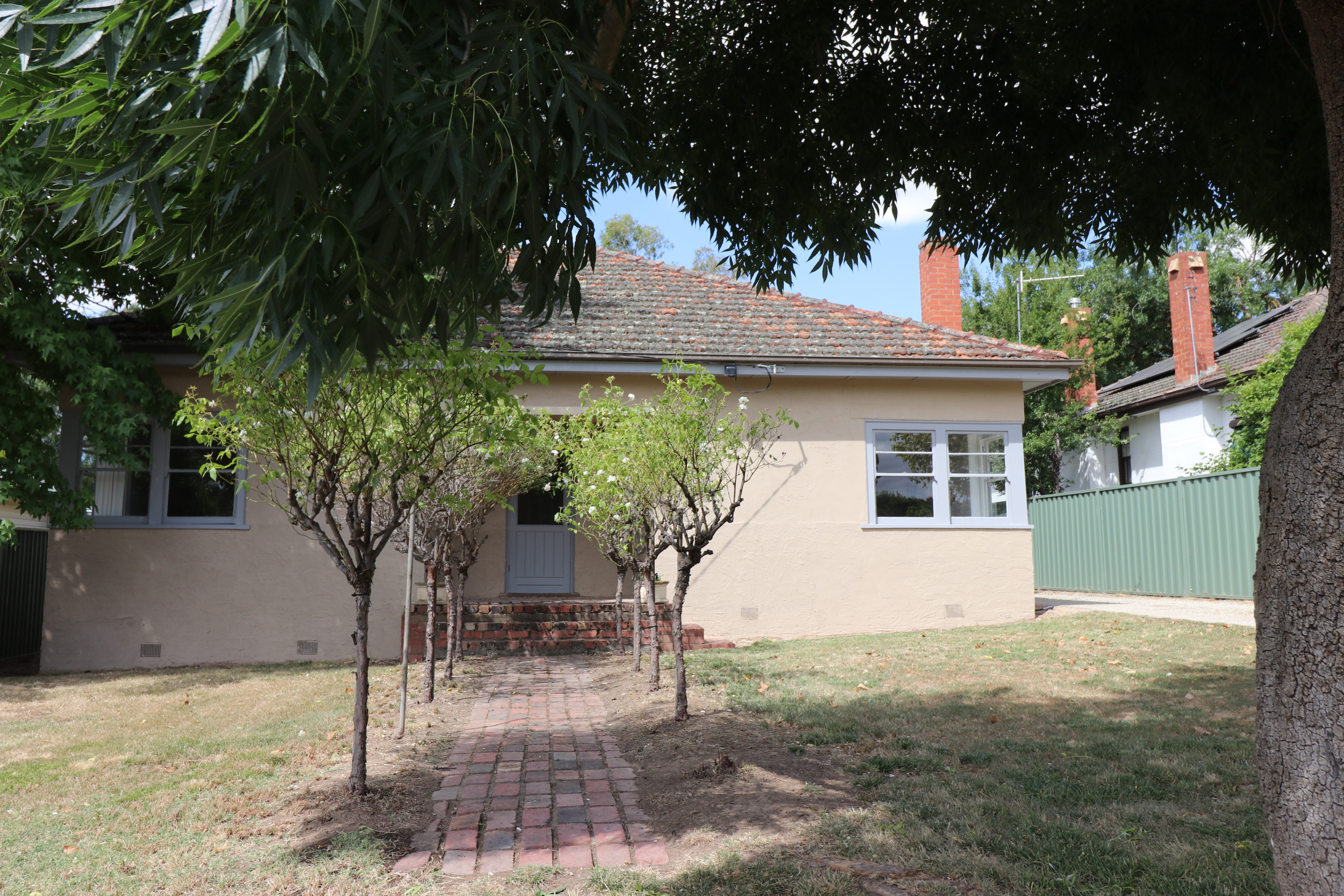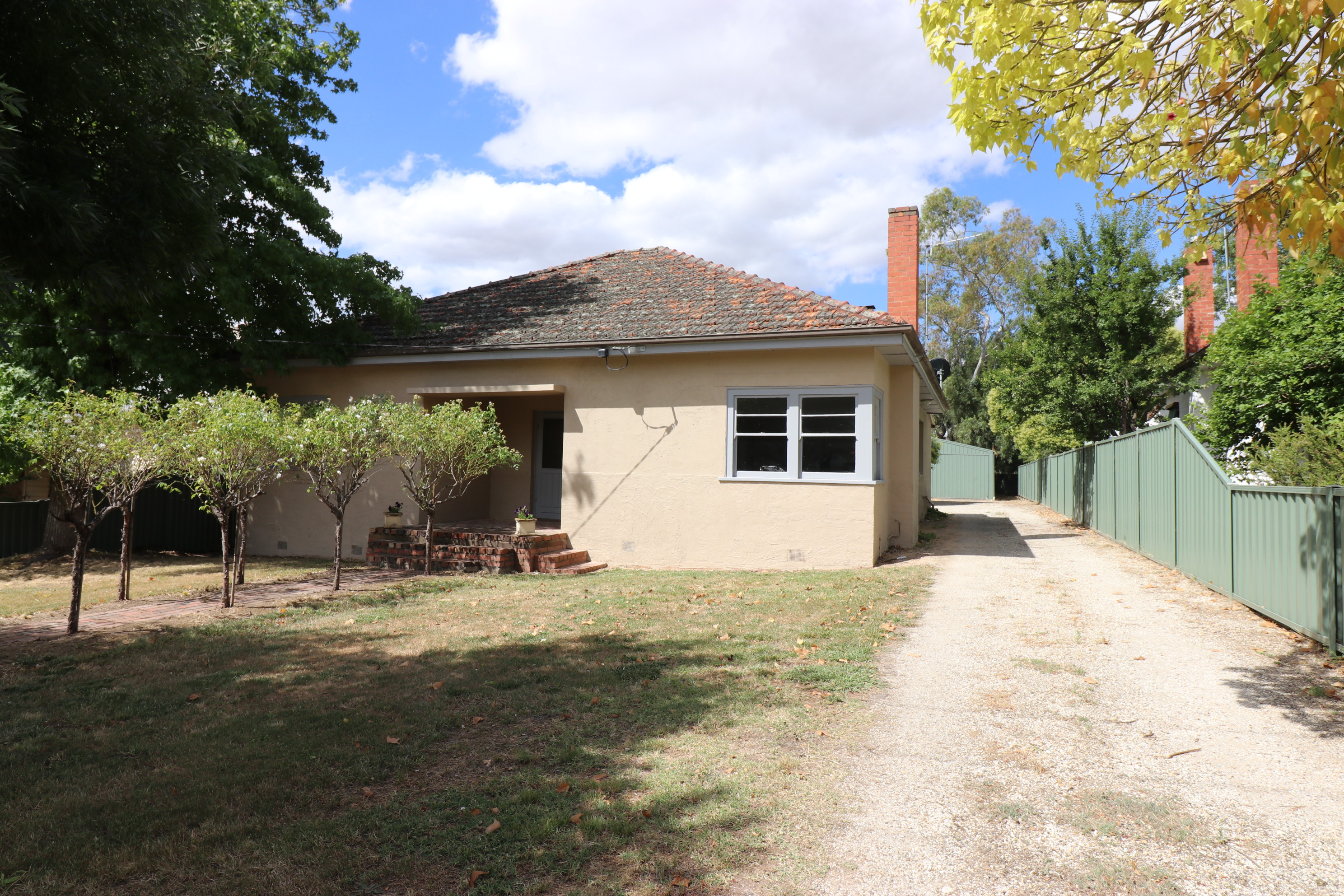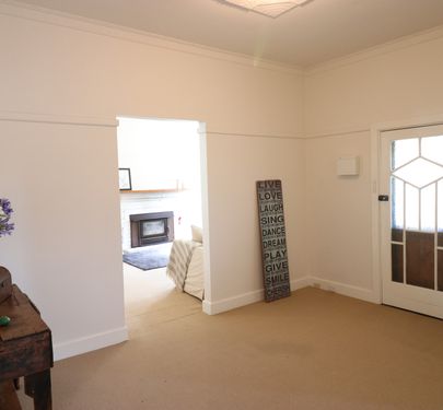 Presenting this delightful brick veneer bagged home on a large (1000m2 approx) block displaying all the beautiful features of it's era. Enter into a roomy welcoming lobby with high ceilings throughout, 3 spacious bedrooms, 2 with built in robes, sunny corner windows and polished wooden floors in the kitchen/ meals area and bathroom. With some renovations done to create an open living/dining and kitchen space and additions such as a wood heater in the fire place, a split system for temperature comfort, and a superb antique claw foot bath in the bathroom, this very inviting home offers comfort and livability. The huge back yard is a child and doggy delight with a highlight being the magnificent fig tree which is laden with fruit yearly. For the shed and man cave lovers, there is an 8 square shed/garage with concrete floor and power and big enough to disappear in for days. All of this and only a short stroll into town, what more could you want.